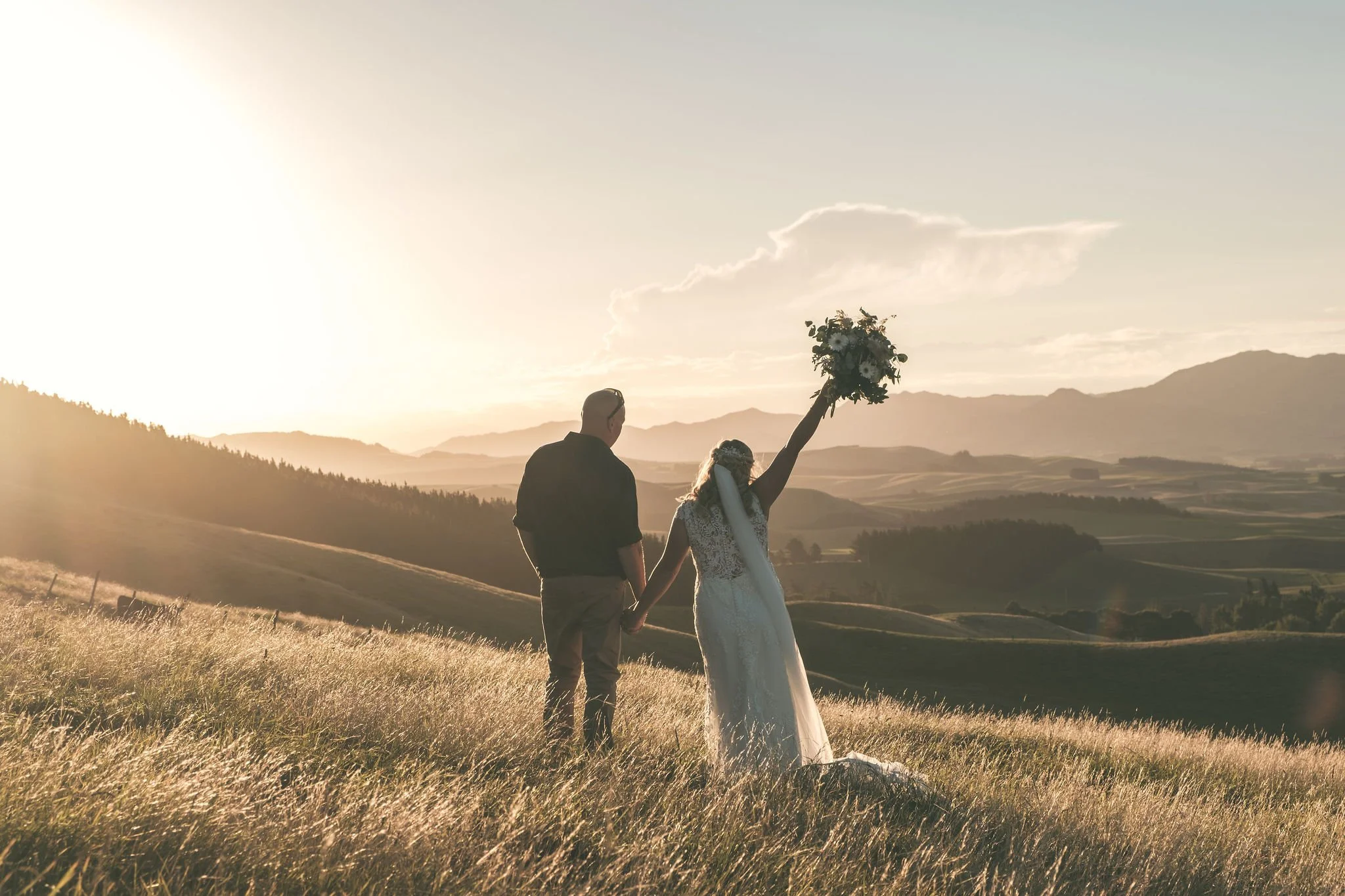 Tipapa Estate’s long driveway lined with trees is a favourite for wedding photos, along with a trip up the hill above the estate in our 4x4 for golden hour. We think this secret spot above Tipapa is easily one of the best places in Canterbury NZ for sunset wedding photos. It’s super easy to nip away and take some time out as newly-weds to soak up the good vibes and golden rays.